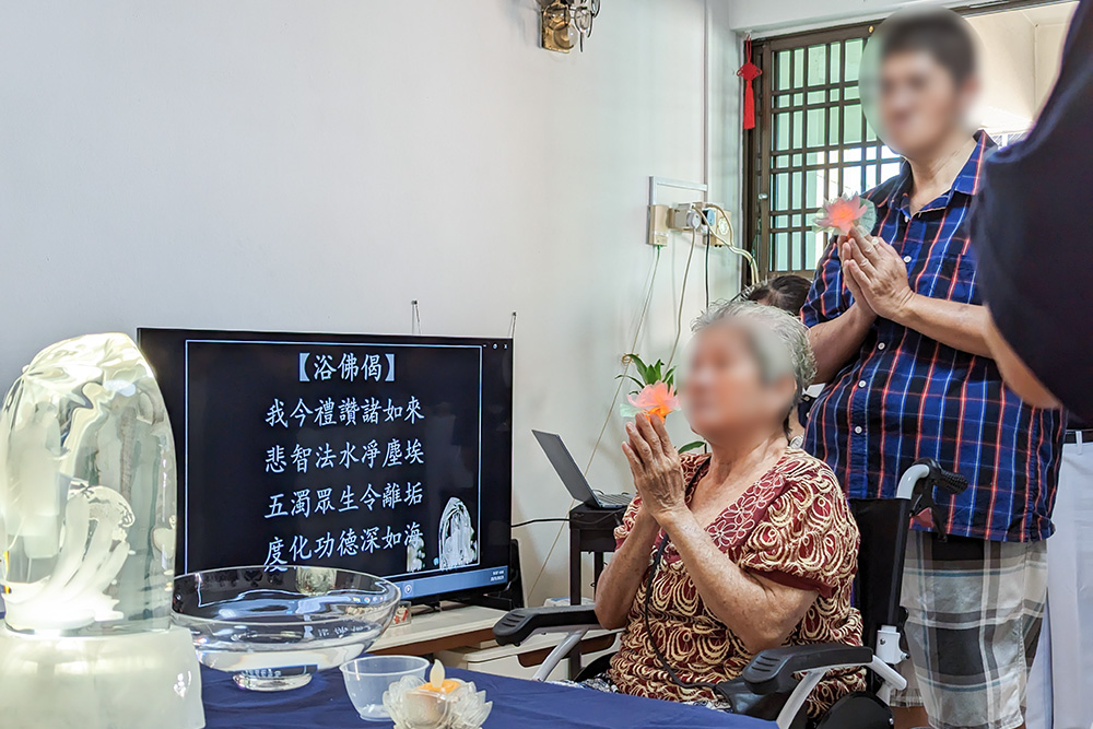 请佛到家,让行动不便的照顾户也能参与浴佛盛典。(摄/ 杨雯婷)